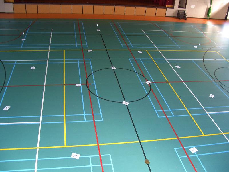 現在までは順調に事が進んでいます。 トラブルは特になく、飛行の練習に専念出来る、理想な環境になっています。 いままで操縦士を担当していた岡田君ですが、これから内定した企業の早期研修に出る事になり、練習が十分にこなせなくなってしまいます。 そういった事情から、操縦士を岡田君に代わり星野君が担当することになりました。 ただ不幸中の幸いか、ラジコン操縦士とラジコン保険にはまだ加入していなかったので助かりました。 一方、星野君はなかなか操縦のセンスがある様で、三日ほどで自由に飛行させられるように上達しました。 ♯15Aが今までジョイフルに比べて、格段に性能が良くなっていることも、追い風になっているようです。 初めの頃は壁によく衝突させては壊して、その度に修理に時間を掛けていましたが、今では壁にぶつけるようなことは無くなりました。 ここで体育館に紙コップで半径10mの円を作り、コンクールを再現してみました。 ←高いところから撮影したため、かなり怖いです……。 とにかく円が広くて中身がスカスカな感じです。 この円の中を飛行することは、今のままでも出来るのですが、正確に文字の上を飛行することは、まだ難しいようです。 星野君の操縦テクニックに掛かっています。 ガンバレ!!! ♯15Aの性能ですが、他の機体に比べてどうなのかは分からないのですが、なんとか不便ではない程度に仕上がりました。 重量:157g 現在重量オーバー。バッテリーのカバーを外したところ、4gも軽量できたので現在の重量は153g程です。 最小旋回半径:1mくらい かなりスロットルをいっぱいに上げて、しかも左旋回時のみ発揮できる数値です。 プロペラの回転方向の問題なのか、右旋回は苦手です。 最小離陸距離:50cmくらい? 一度だけフルスロットルで離陸させたところ、目にも止まらぬ速さで飛んでいきました。 機体が壊れそうで怖いので、普段はこんな離陸はしません。 最低飛行速度:4.3m/s 10mをゆっくり飛ばしてタイムを計測。 これは数字は果たして他のチームに比べてどうなんでしょうか……? 機体の特徴としては、強力なモーターのパワーで、どんな機動をしても失速しないこと。 いつかこれをホバリングをしたいと書いていましたが、そうとうな操縦技術が必要と聞き、これを更にエルロンも必要になるため断念。 それでも強い推力は機体を複雑なコントロールする上でかなり有利に働いているようです。 旋回もスロットルを上げてこそよく舵がきき、低速でも大きな舵力を発揮します。 主翼にもプロペラ後流が当っているため、大きな揚力を生むのに役立っています。 やっぱりパワーに勝るものはなし。 ジョイフルを飛行させることに慣れて来たため、とうとうその時がやって来ました。 これだけの時間を掛けて、未だに未経験だったこと。 カメラを積むことです。 いままで積んでいたダミーを外し、代わりに本物のカメラを積みます。 画像の乱れがあるものの、そのまま離陸! 私(水越広樹)が観測士ですから、私がテレビを睨みます。 だんだんと床が遠くなっていくのが分かり……、飛びましたよ。 文字が画面を次々に通過していきます。しかしノイズが多くてほとんど見えない……。 受信アンテナを高く上げれば、まだ少しは良くなるのですが……。本番もこんなものなのでしょうか? 仕方ないですからアンテナを壁に貼り付けて少しでも高い位置に置きました。 これからは、星野君が文字を撮影をする特訓と、私が読み取る特訓をつんで行く予定です。 ではでは